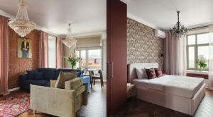 Дизайнер использовала насыщенные и сложные оттенки, много декоративных решений, чтобы создать по-настоящему запоминающийся интерьер. Заказчики и задачи Владельцы этой квартиры семейная пара. Хозяйка развивает бизнес посуточной аренды в Тобольске. К дизайнеру Елене Максимовой она обратилась с запросом оформить необычный интерьер, который будет привлекать внимание туристов. «Нужно было сделать яркие цветовые акценты и решения, на которые …